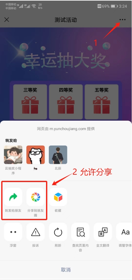 如果设置允许分享,效果如下:
